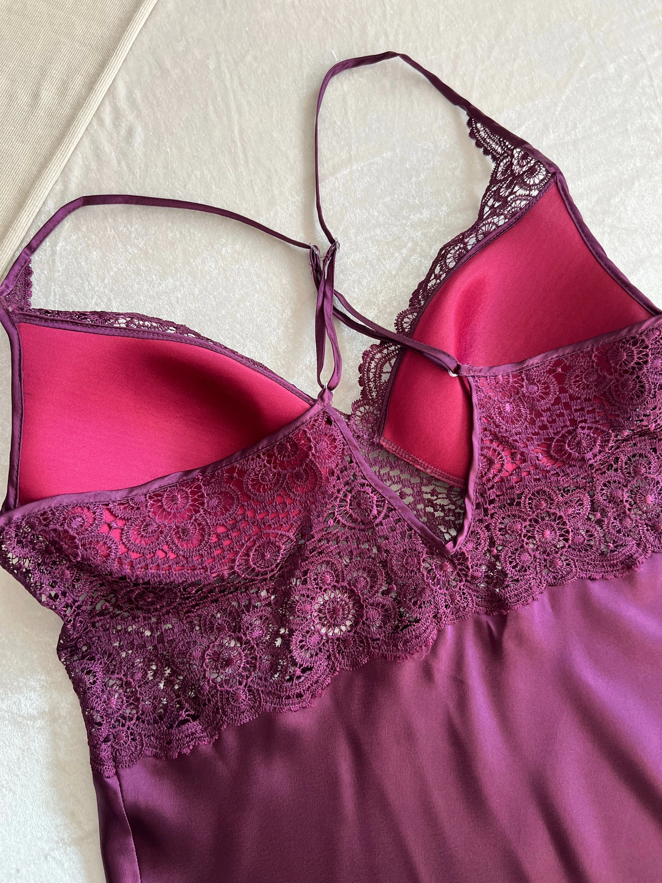 Bordo Güpür Detaylı Gecelik