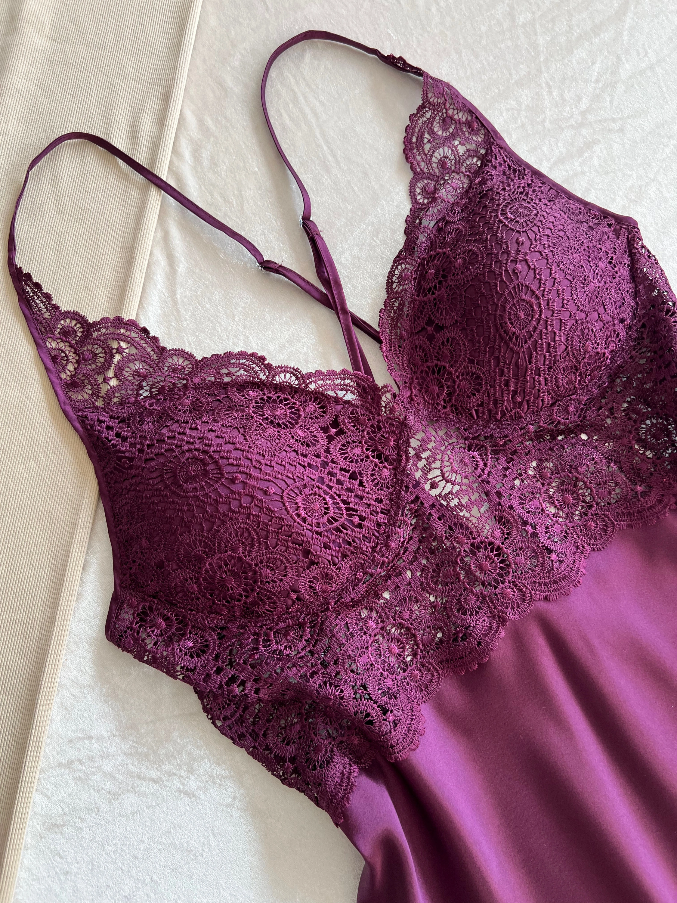 Büyük Beden Mor Güpür Detaylı Gecelik