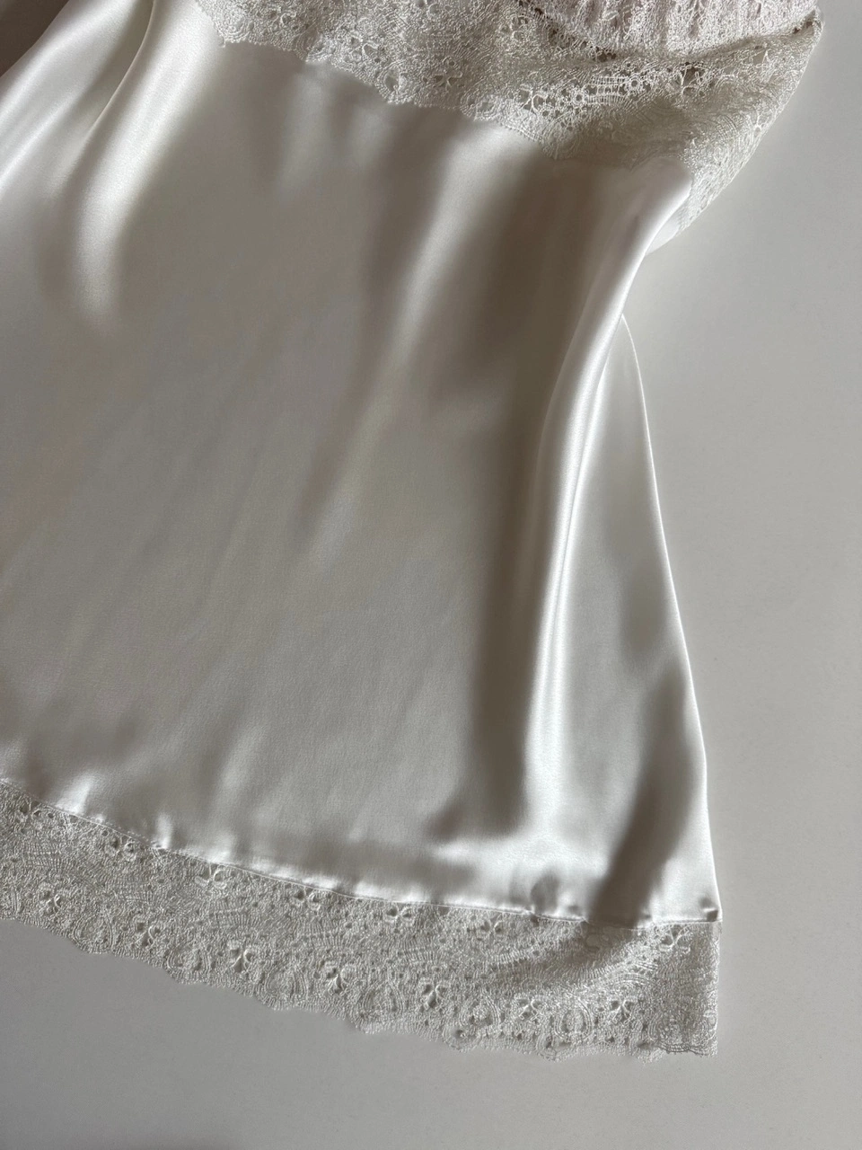 Büyük Beden Ekru Güpür Detaylı Kısa Gecelik