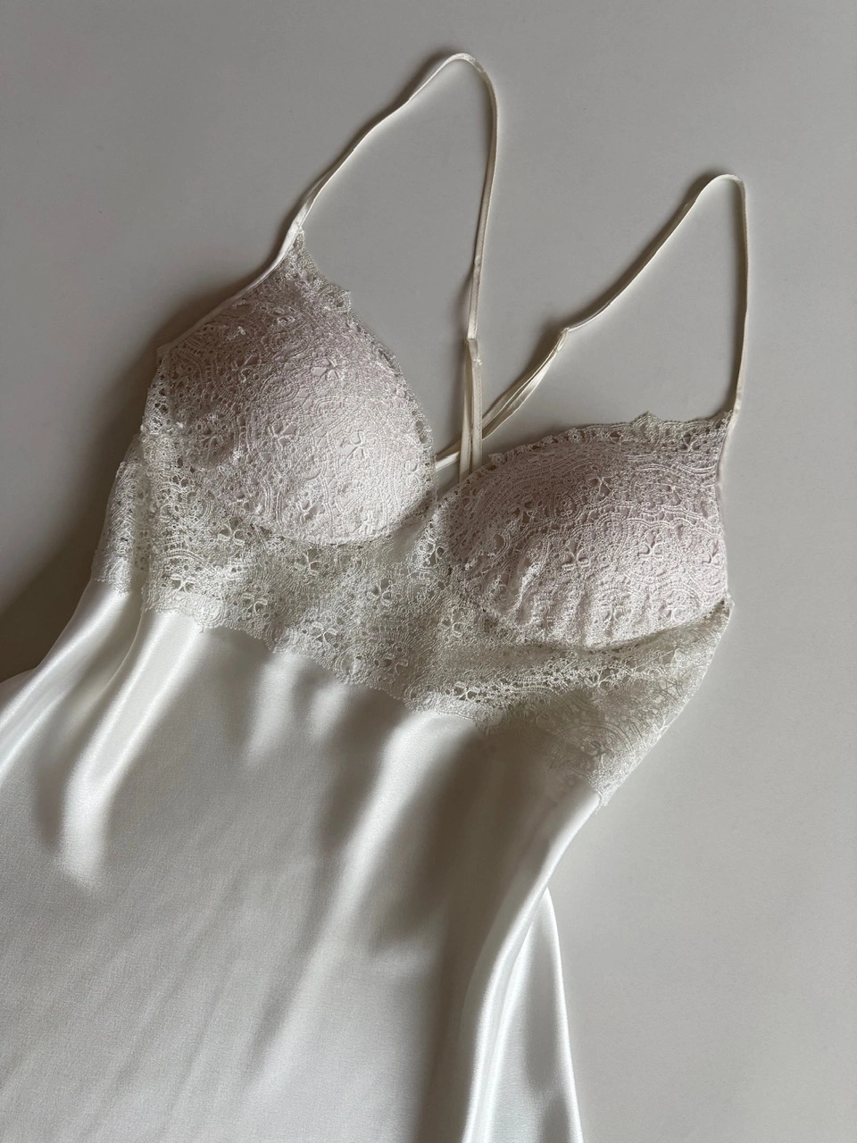 Büyük Beden Ekru Güpür Detaylı Gecelik
