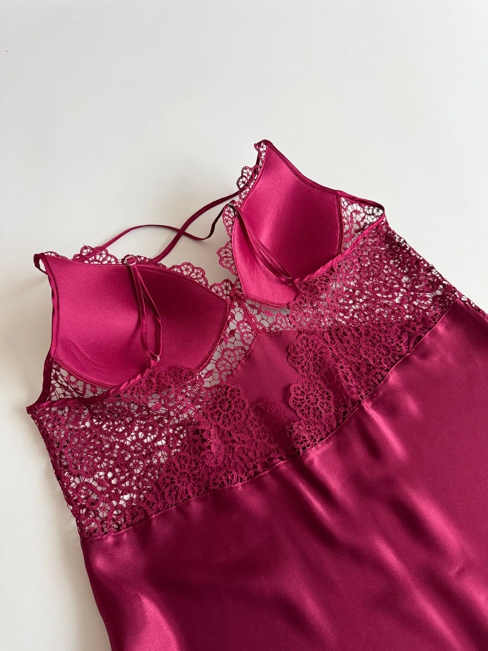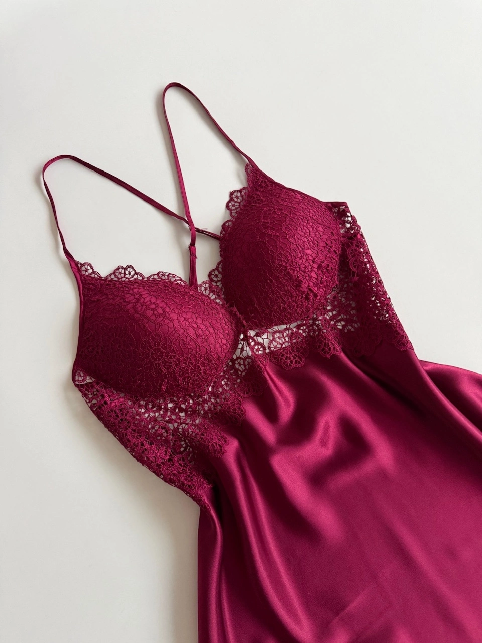 Büyük Beden Güpür Detaylı Bordo Kısa Gecelik