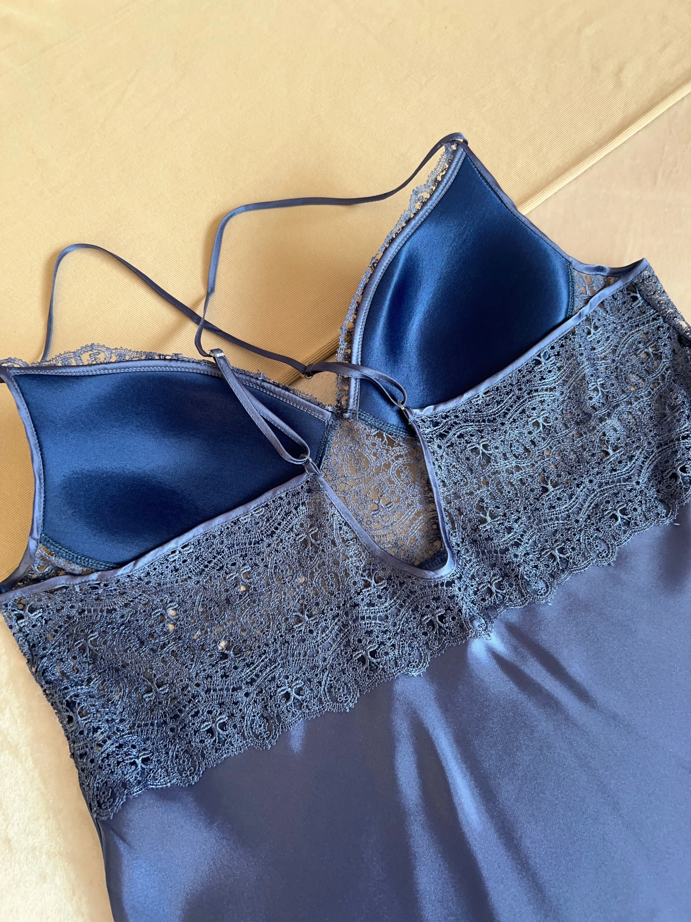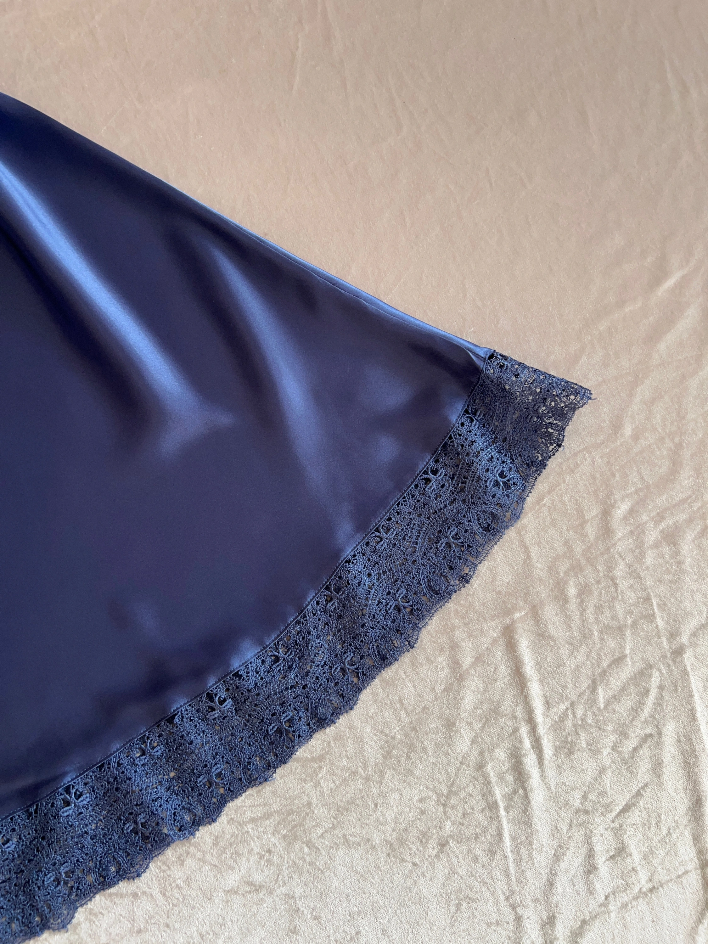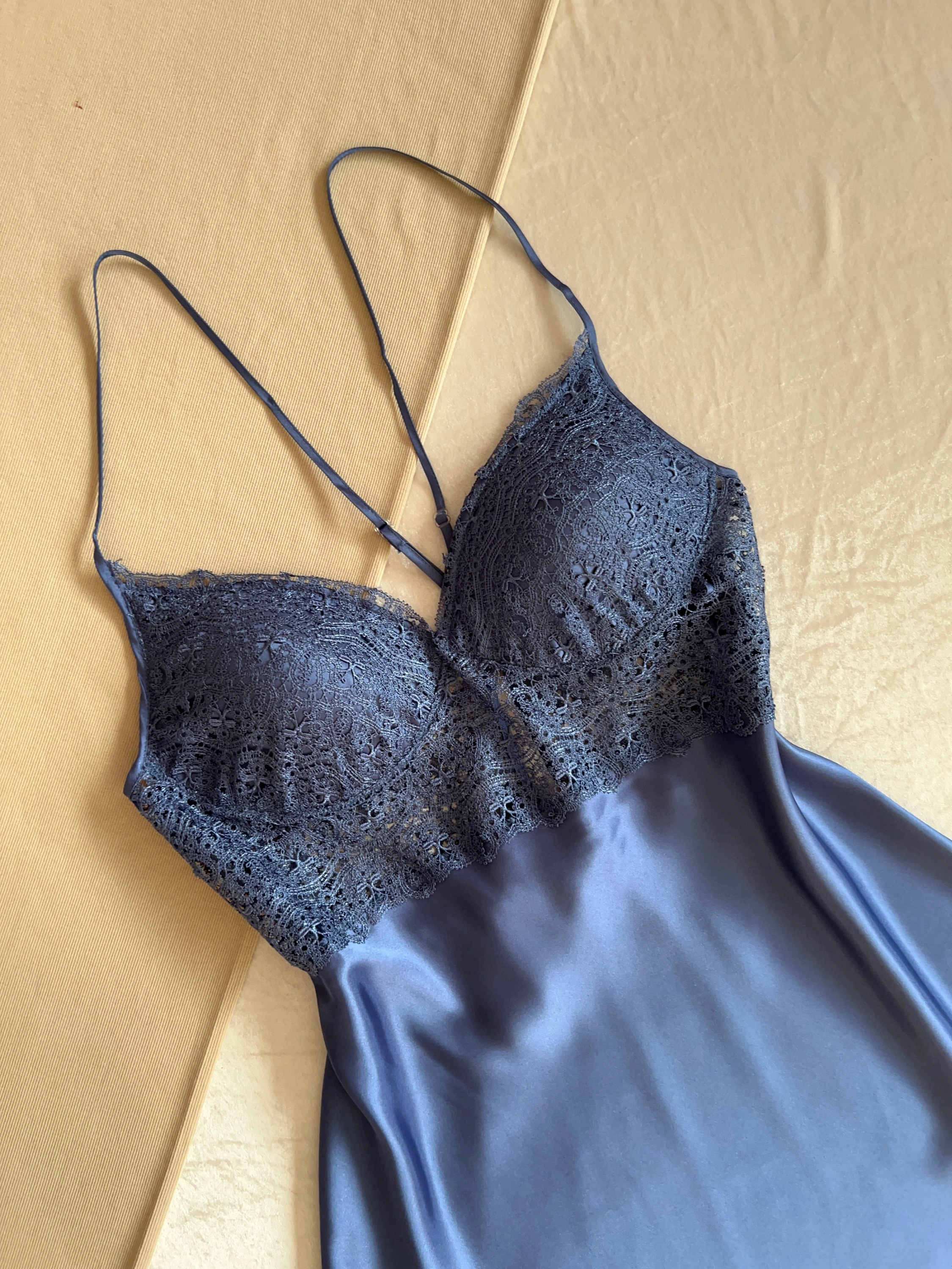 Büyük Beden Mavi Güpür Detaylı Gecelik
