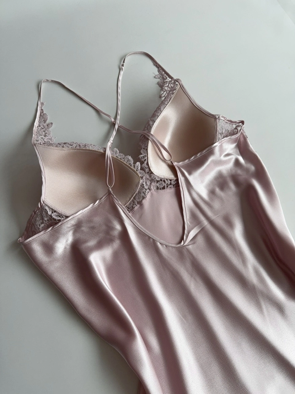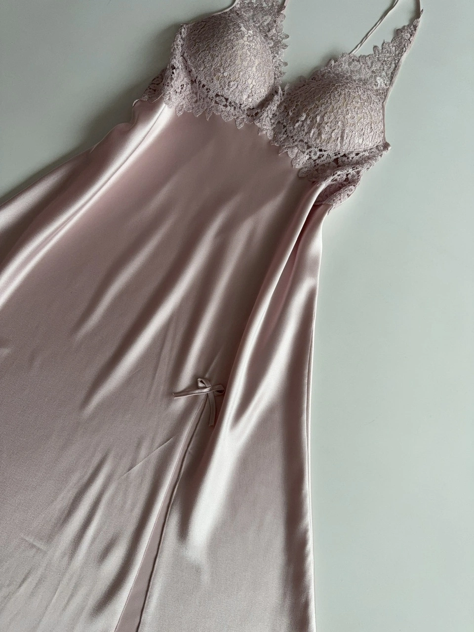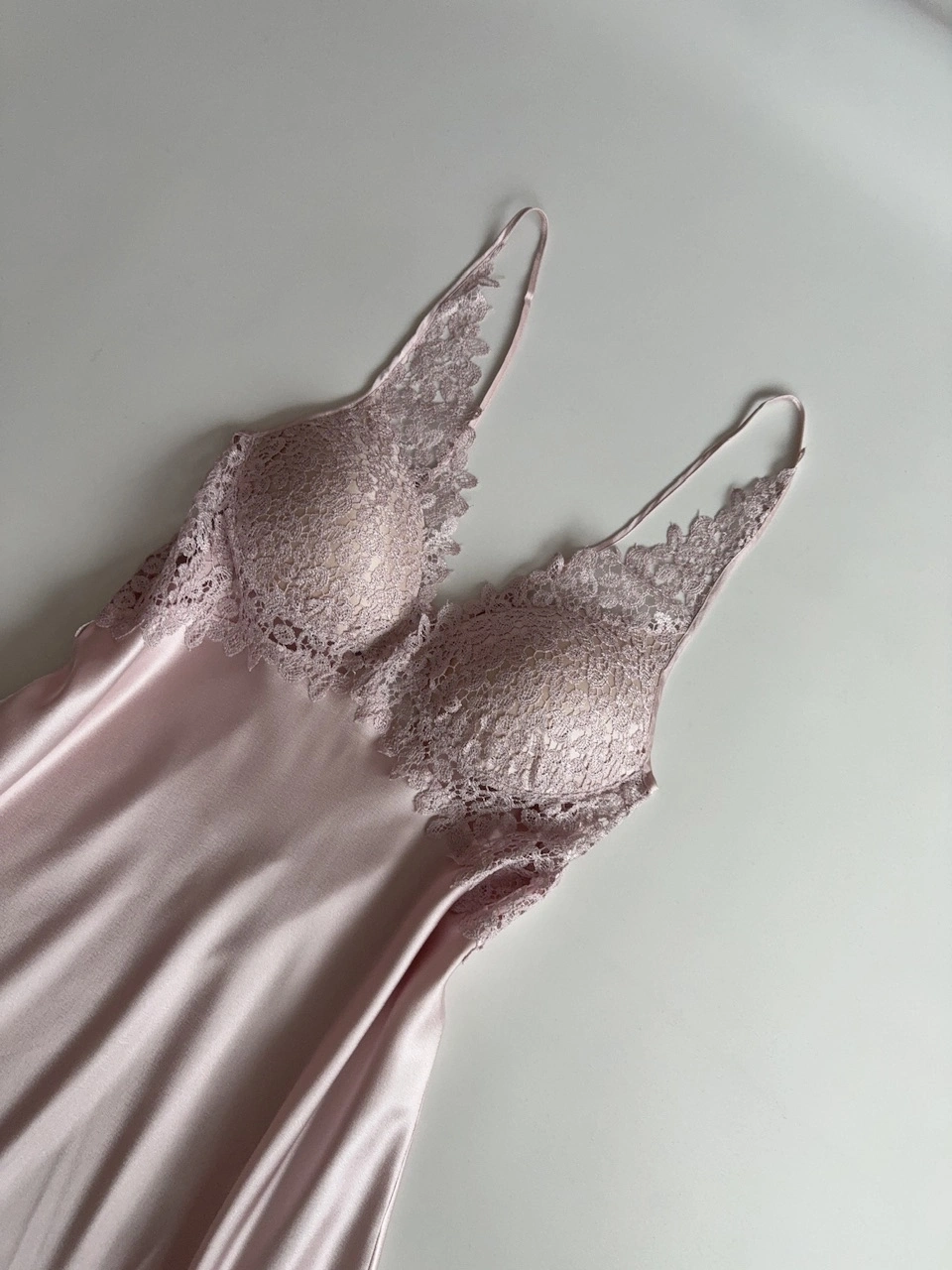 Büyük Beden Pudra Güpür Detaylı Gecelik
