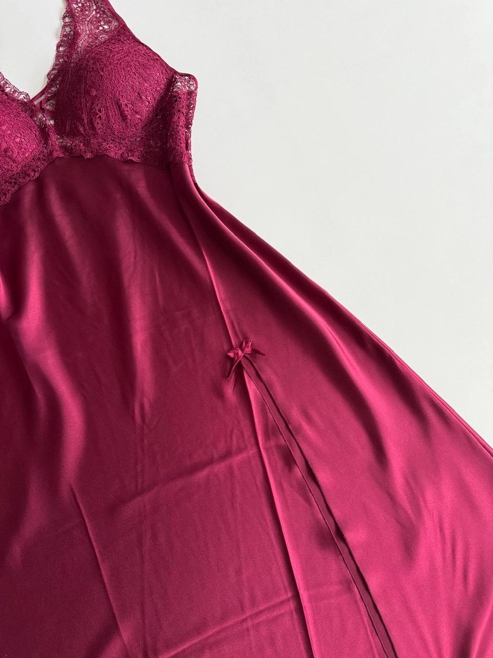 Büyük Beden Bordo Yırtmaç Detaylı Uzun Gecelik