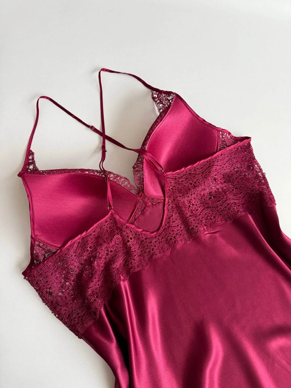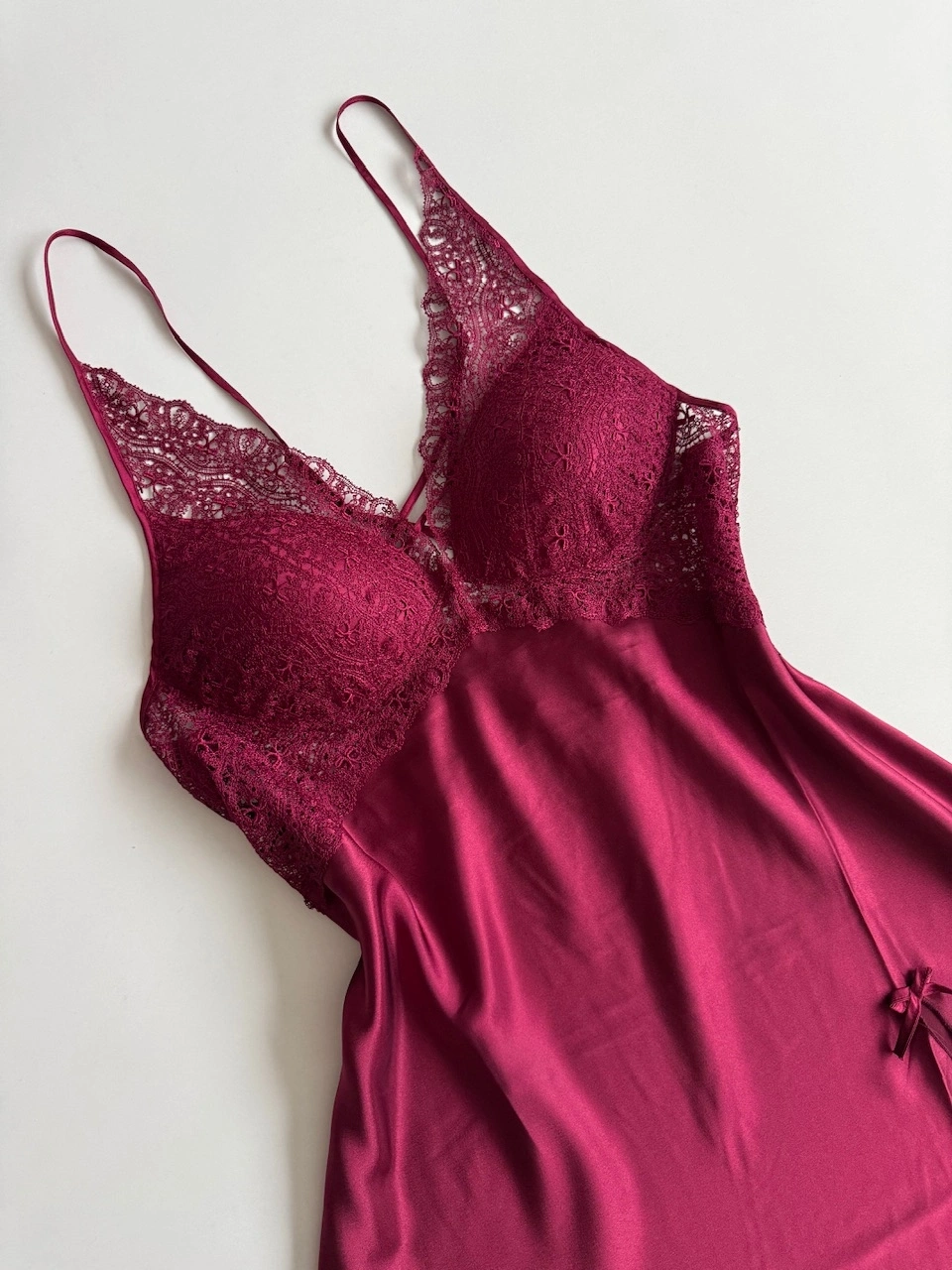 Büyük Beden Güpür Detaylı Bordo Kısa Gecelik