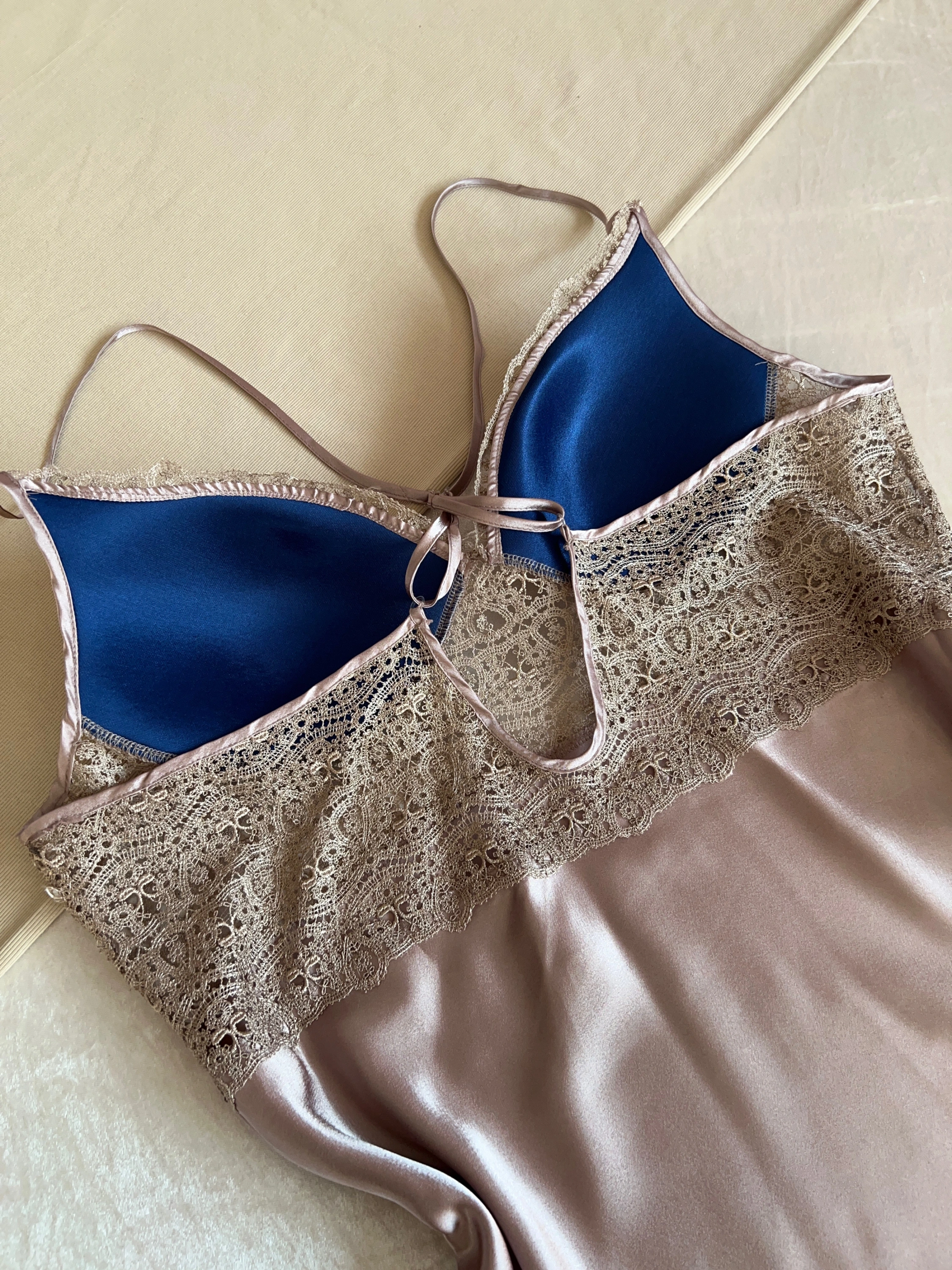 Büyük Beden Vizon Güpür Detaylı Gecelik