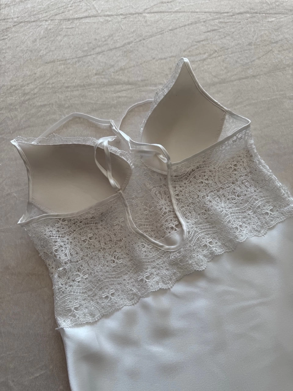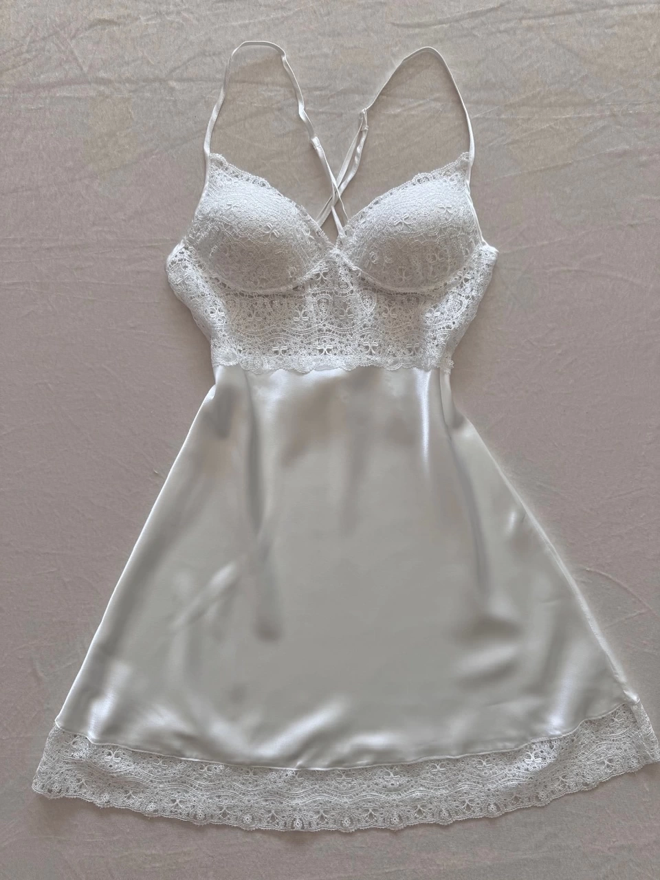 Ekru Güpür İşlemeli Gecelik