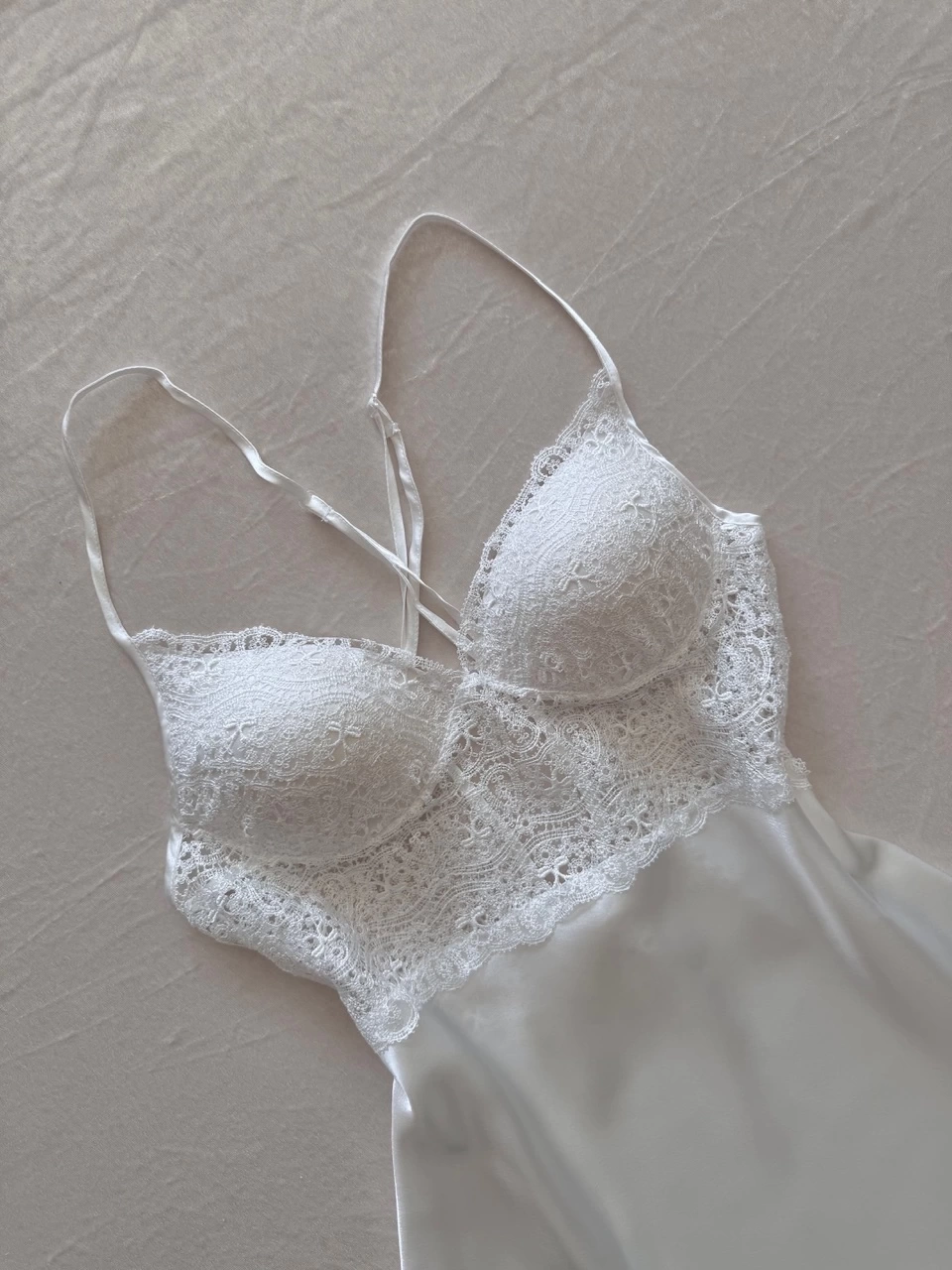 Ekru Güpür Detaylı Gecelik