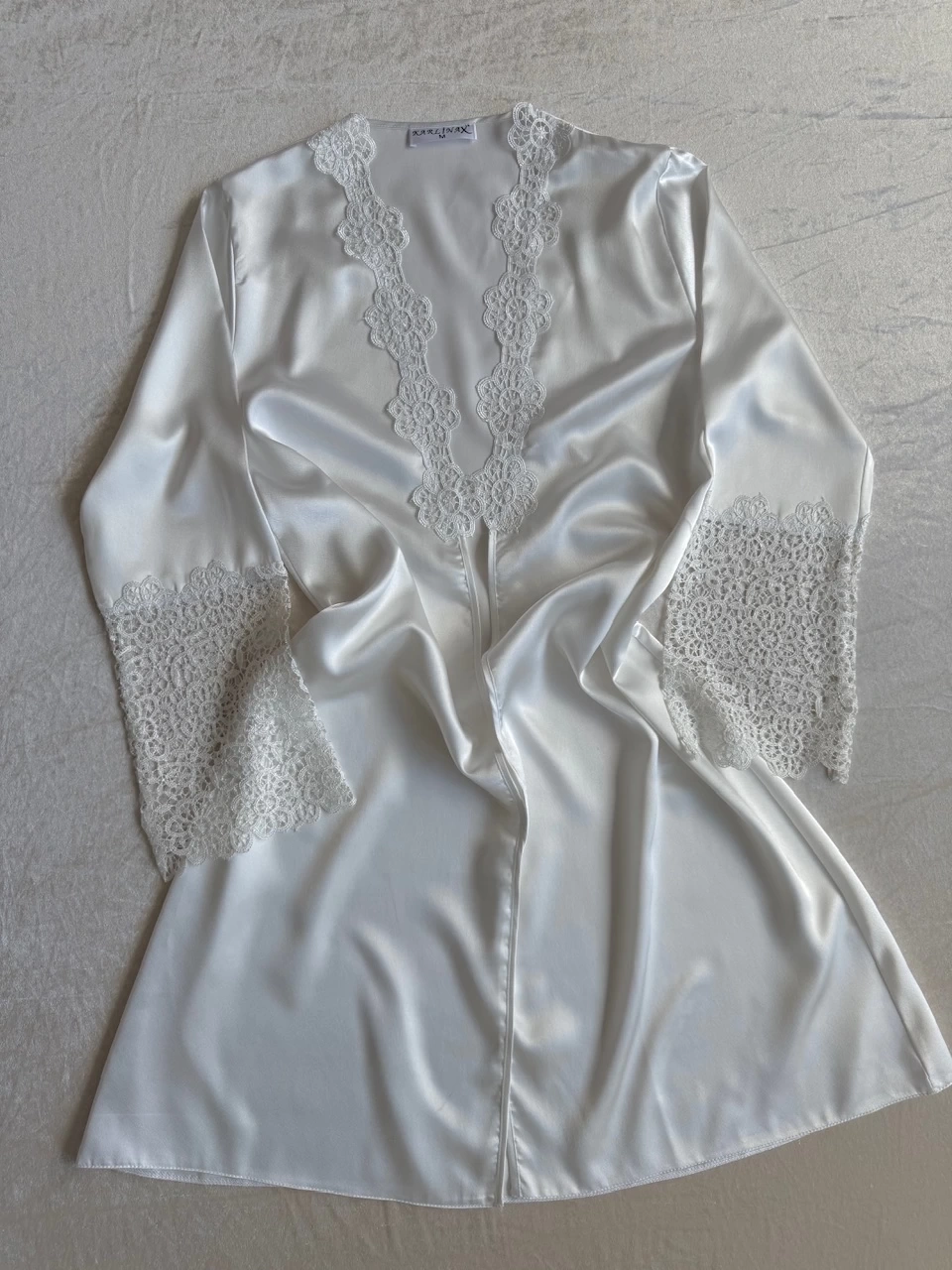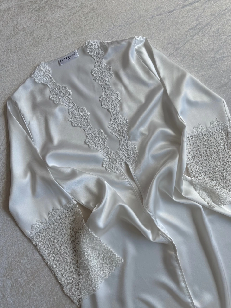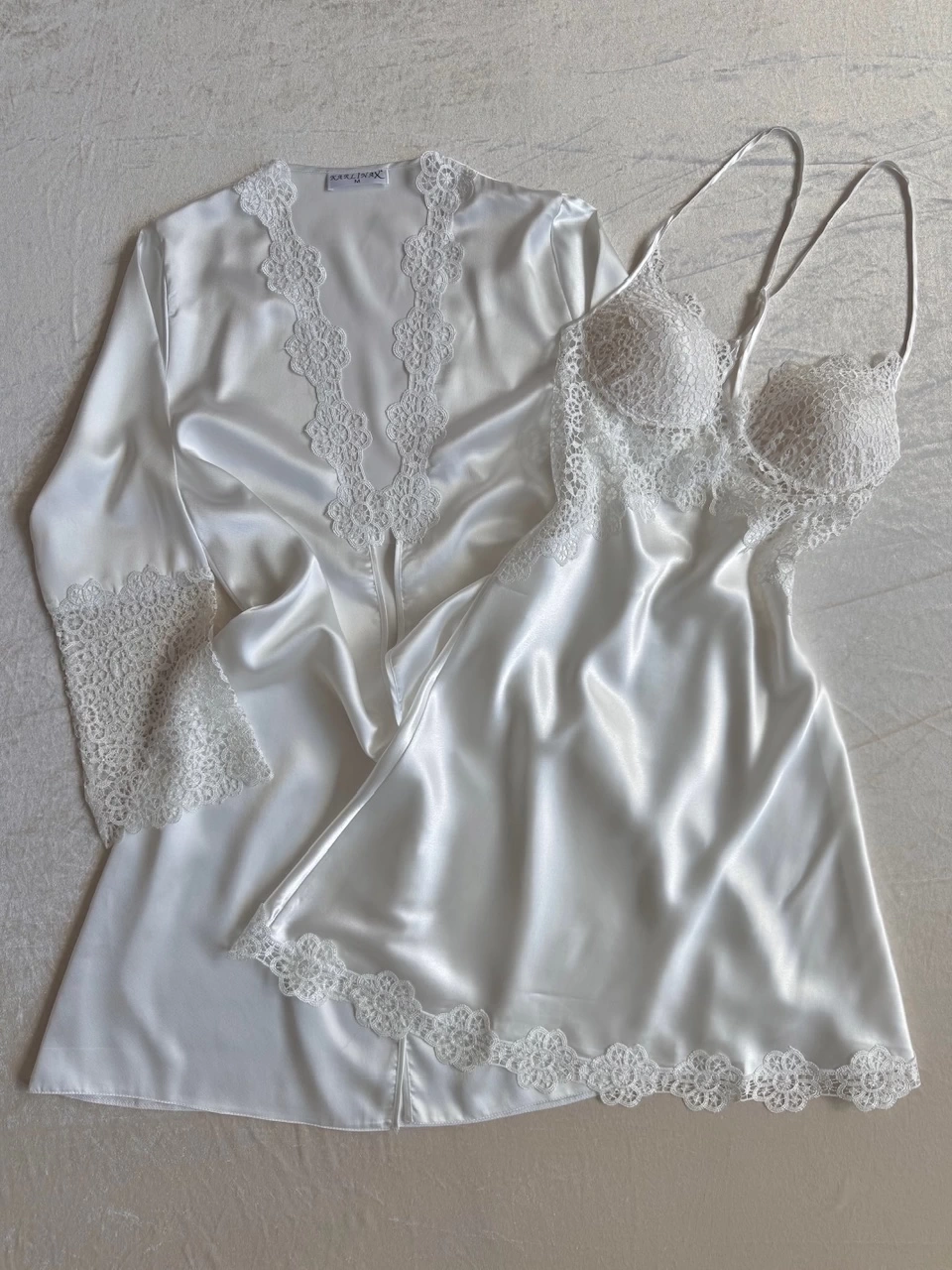 Ekru Güpür Detaylı Gecelik Sabahlık Takım
