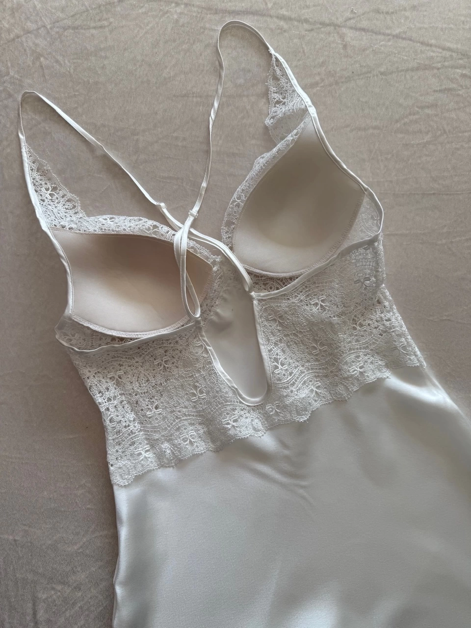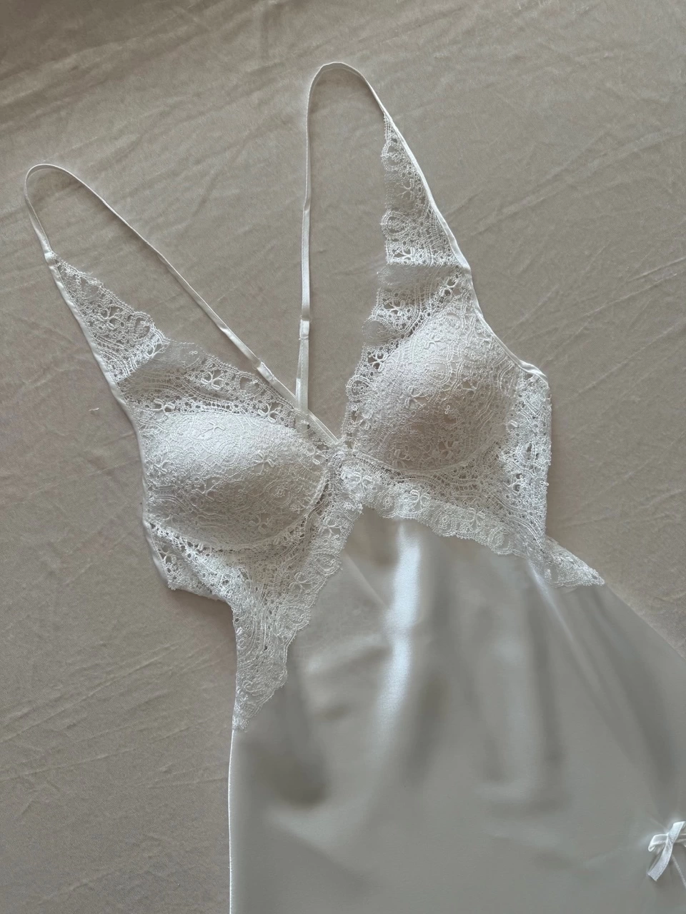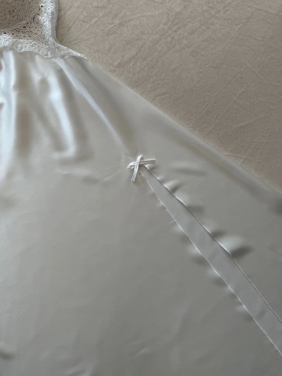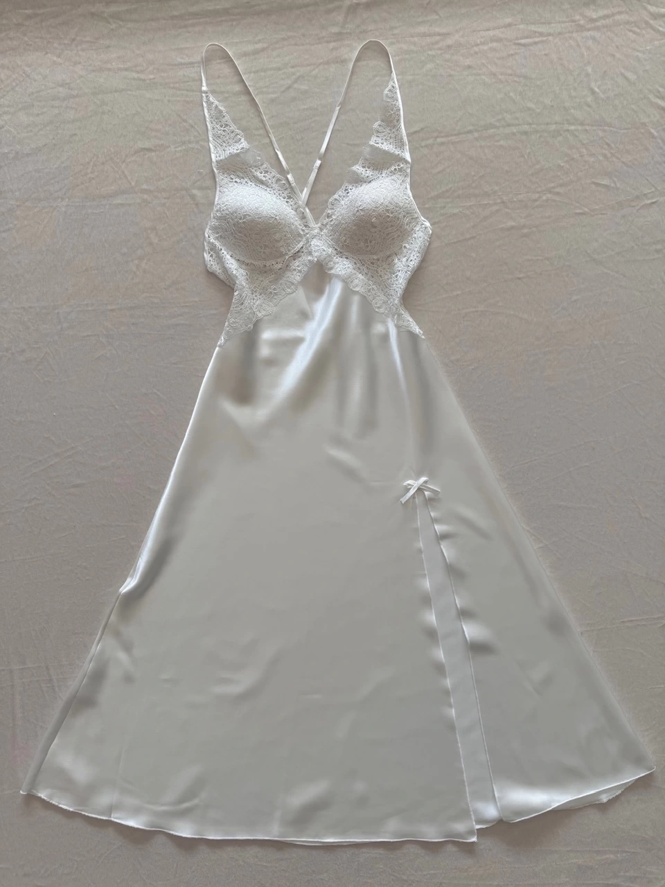 Ekru Uzun Yırtmaç Detaylı Gecelik
