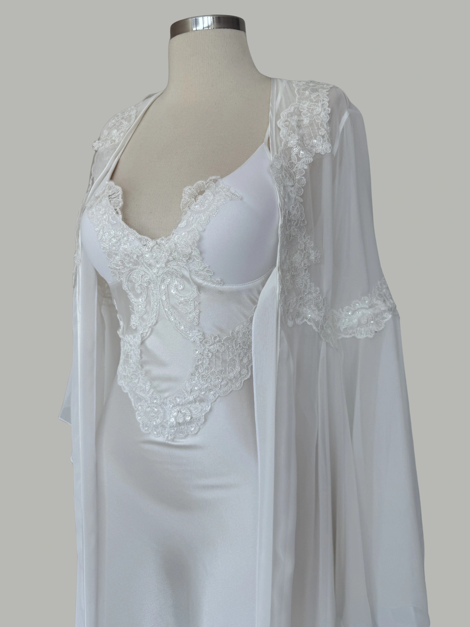 Velora Ekru Dantel & Saten 6’lı Gecelik Set