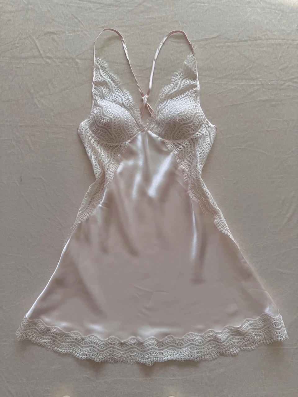 Ekru Uzun Yırtmaç Detaylı Gecelik