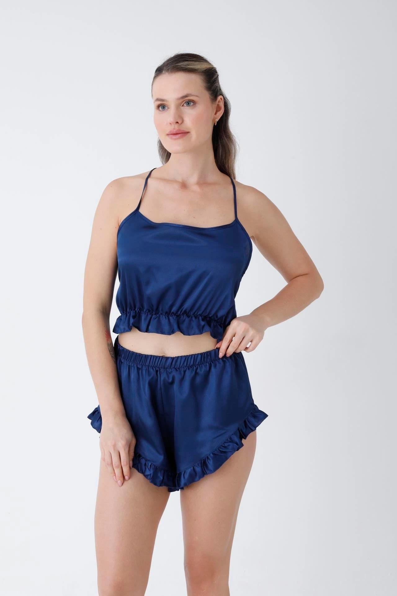 Lacivert Fırfırlı Sırt Dekolteli Pijama Takımı