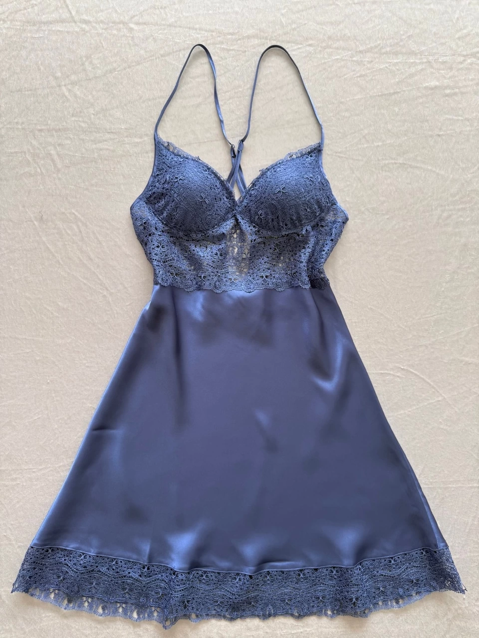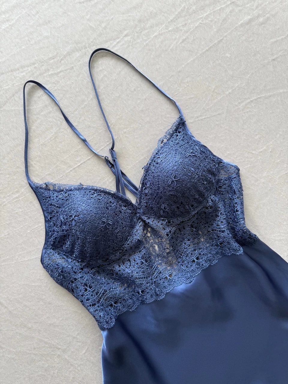 Siyah Kısa Güpür Detaylı Gecelik Sabahlık Pijama Seti
