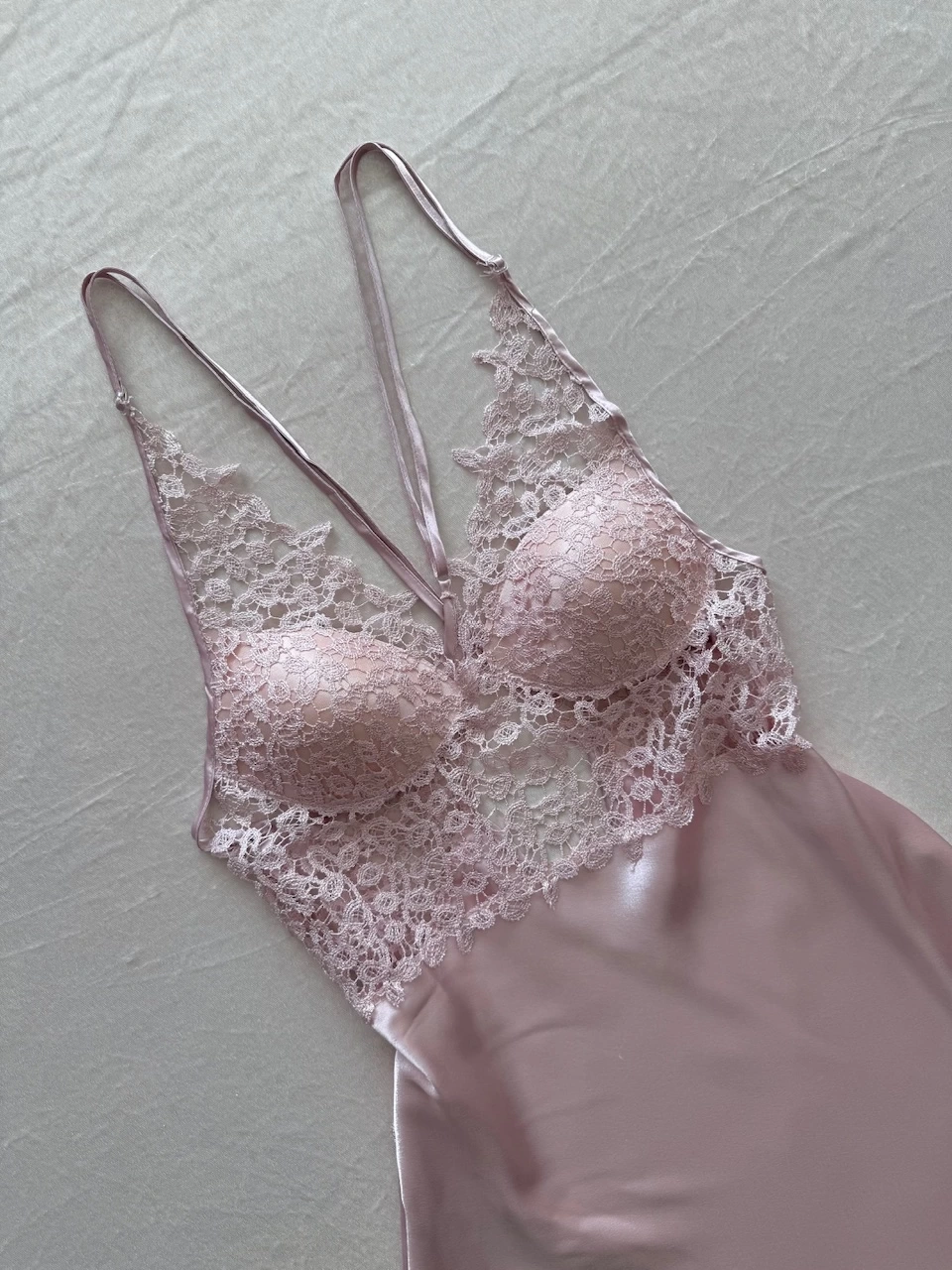 Pudra Uzun Yırtmaç Detaylı Gecelik